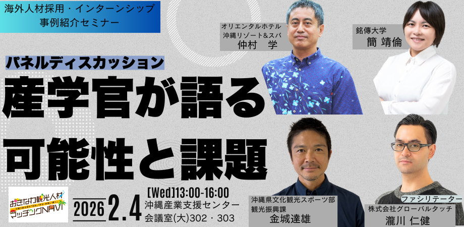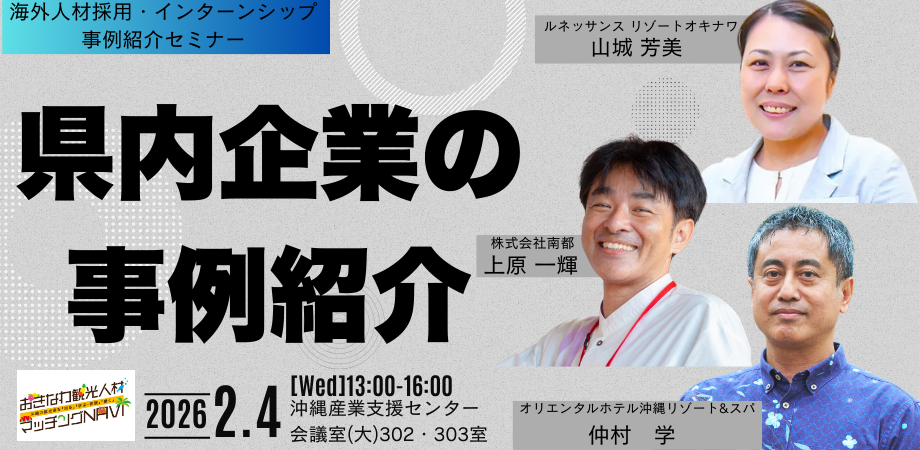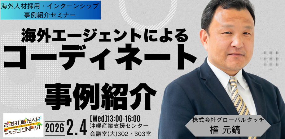 沖縄県主催「観光人材マッチング支援事業」の一環として、県内観光事業者の人事・採用ご担当者さま向けセミナーを開催します。